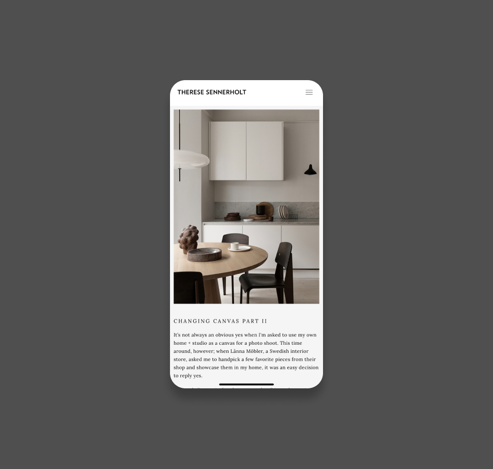 Sennerholt är en välkänd aktör inom inredning och koncept. Hon jobbar med välkända varumärken som H&M, Jotun och Bolon. För att på ett mer tydligt sätt visa upp sina olika uppdrag behövde hon hem ny hemsida. Vi utvecklade ny modern och stilren hemsida med fokus på bilder.